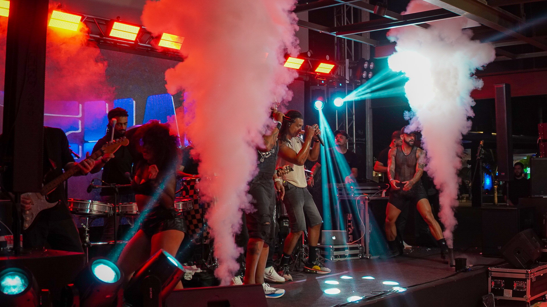 Descrição: Produção técnica completa com palco, efeitos, sonorização e iluminação que elevam a energia do espetáculo. Ideal para eventos de pequeno a grande porte, garantindo impacto sonoro e visual.